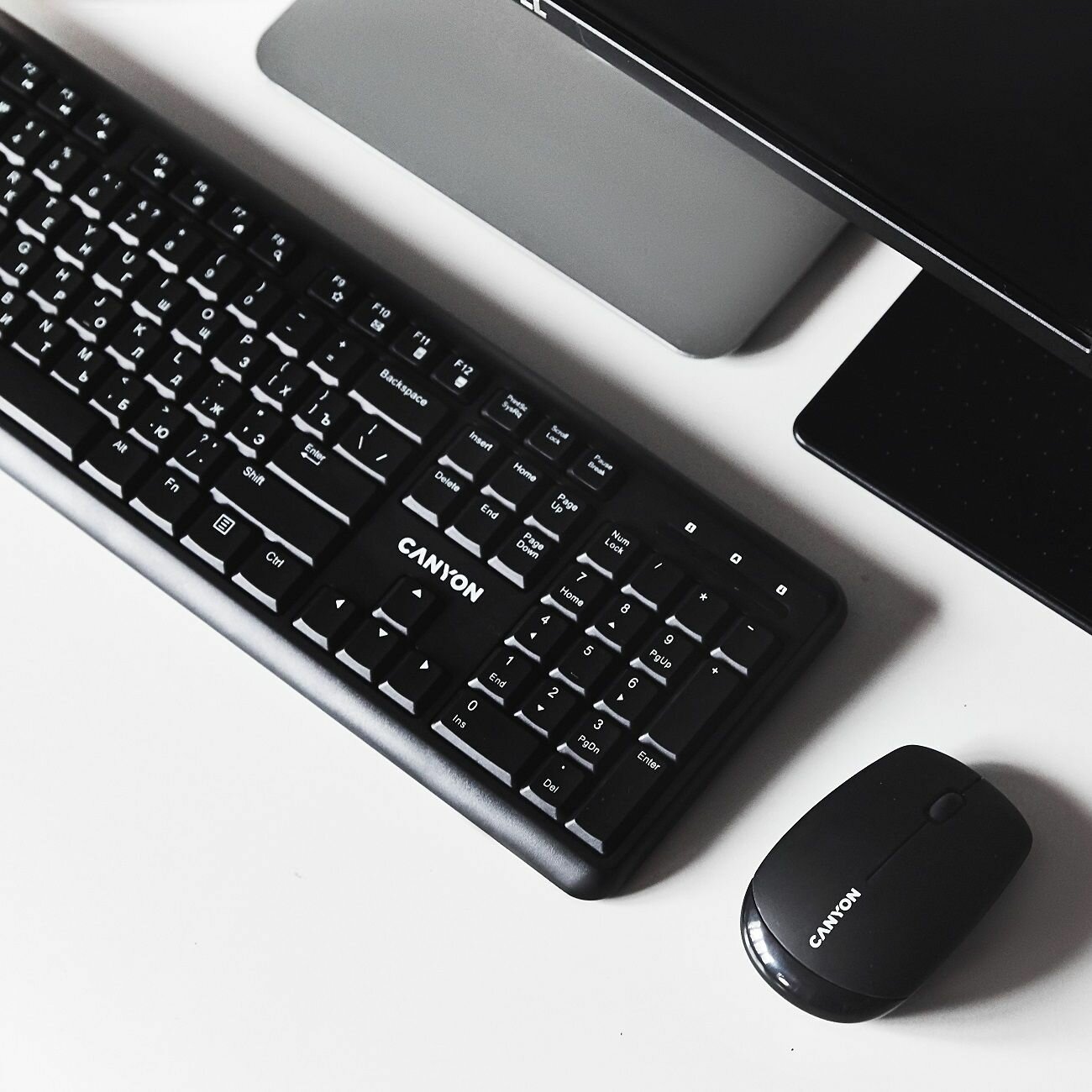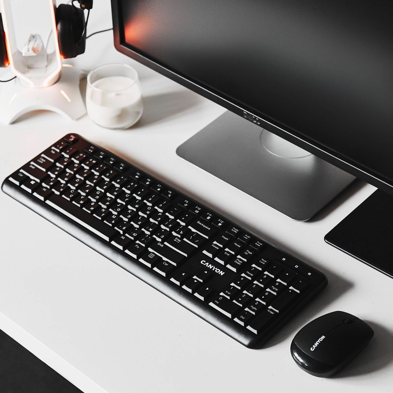 Комплект клавиатура+мышь Canyon CNS-HSETW02-RU интересное: