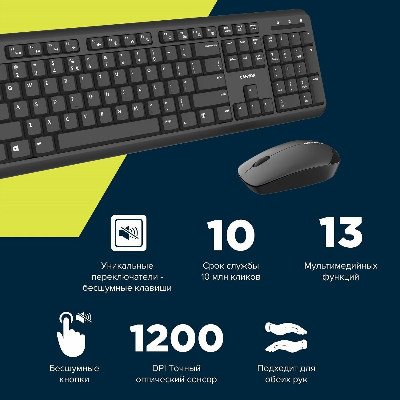 Беспроводной комплект клавиатура+мышь Canyon CNS-HSETW02-RU