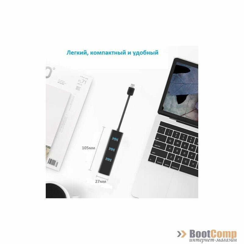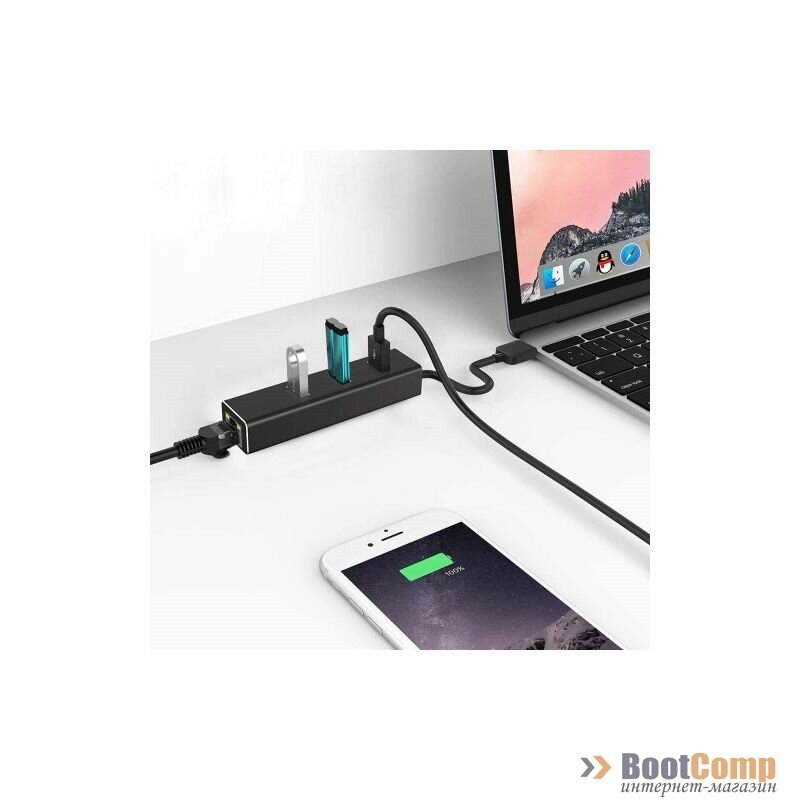 Адаптер USB HUB + Ethernet сетевой "4 в 1"хаб 3 x USB 3.0 + RJ45 переходник LAN Интернет 100 Мбит/с