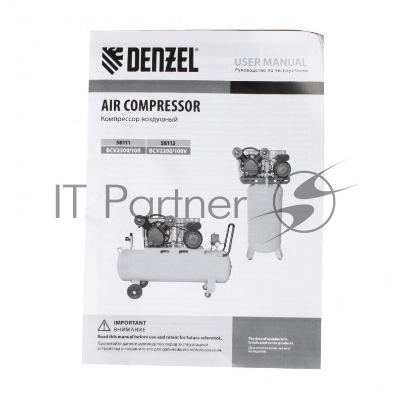 Компрессор воздушный BCV2300/100, ременный привод, 2.3 кВт, 100 литров, 440 л/мин Denzel Denzel интересное: