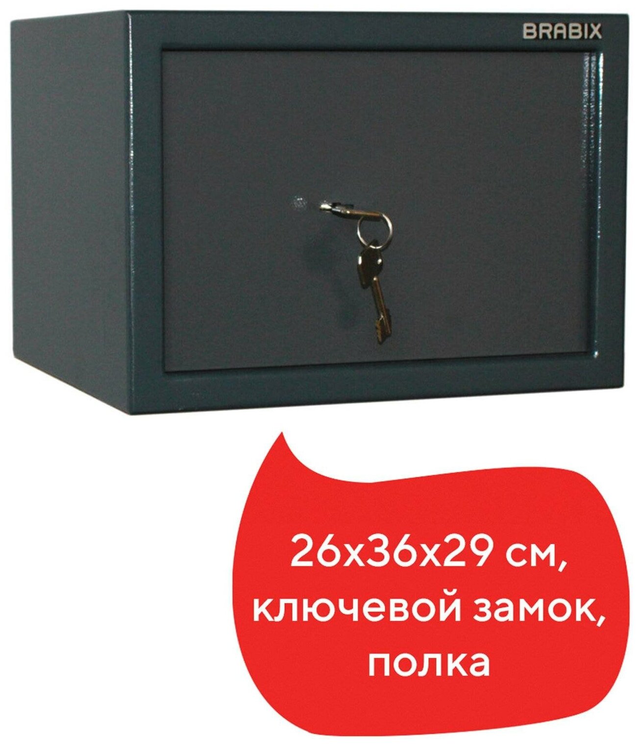 Сейф Brabix "КМ-260", 26х36х29 см, 13 кг, ключевой замок и полка, крепление к стене интересное: