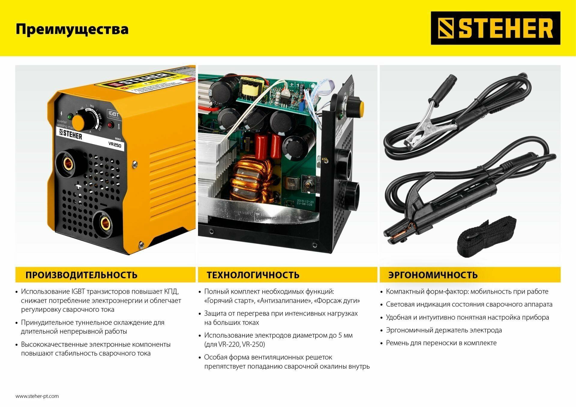 STEHER ММА, 160 А, сварочный аппарат инверторный, макс. электрод O 3.2 мм (VR-160)