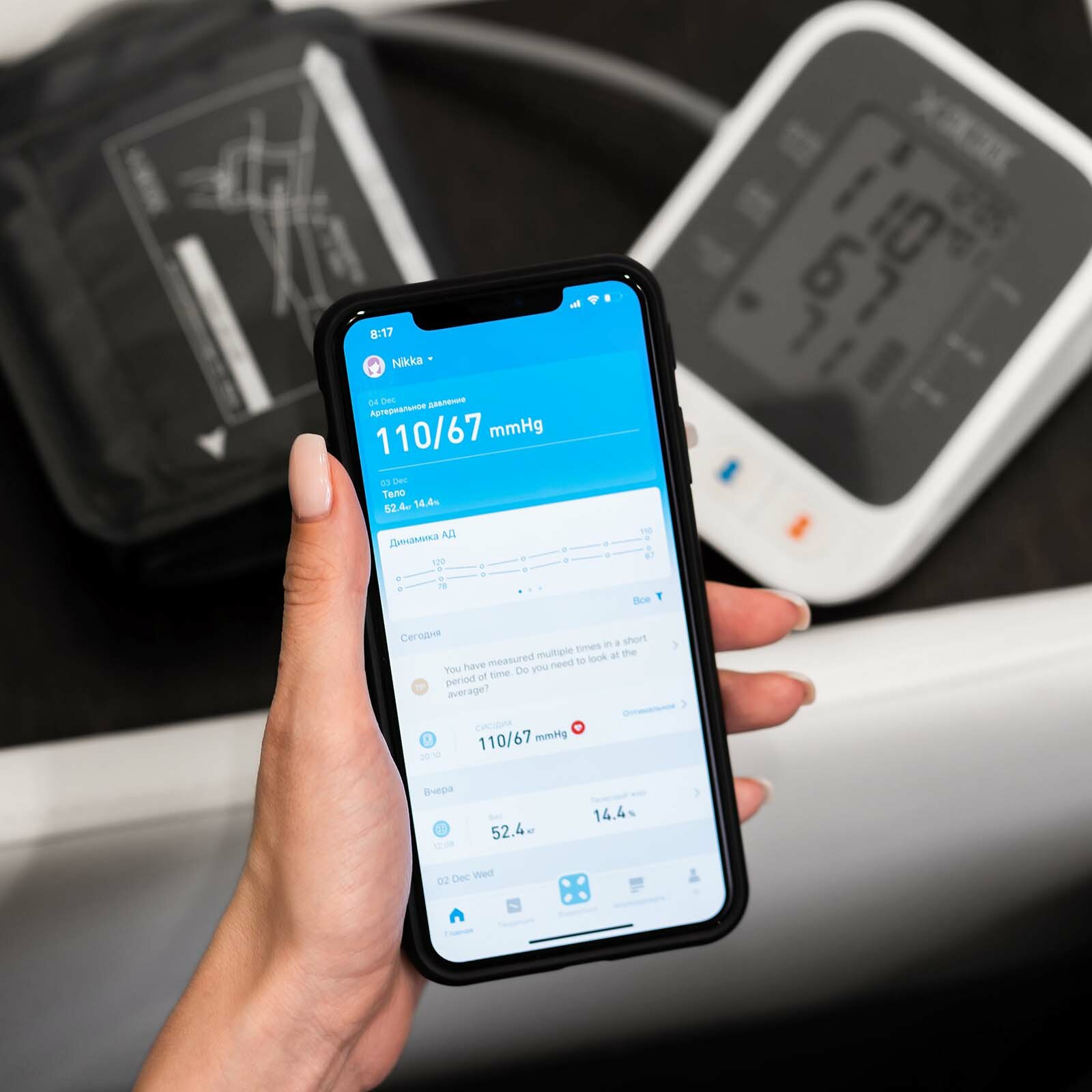 | Плюсы: | Достаточно точный аппарат , избавляет от необходимости вести дневник , дружит с родным приложением от Apple |