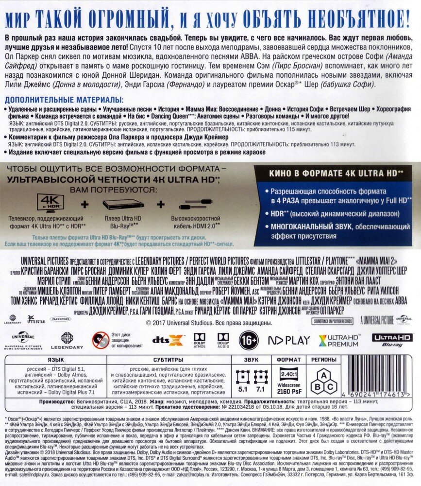 Mamma Mia! 1-2 (4K UHD Blu-ray) 2 BD+ карточки интересное: