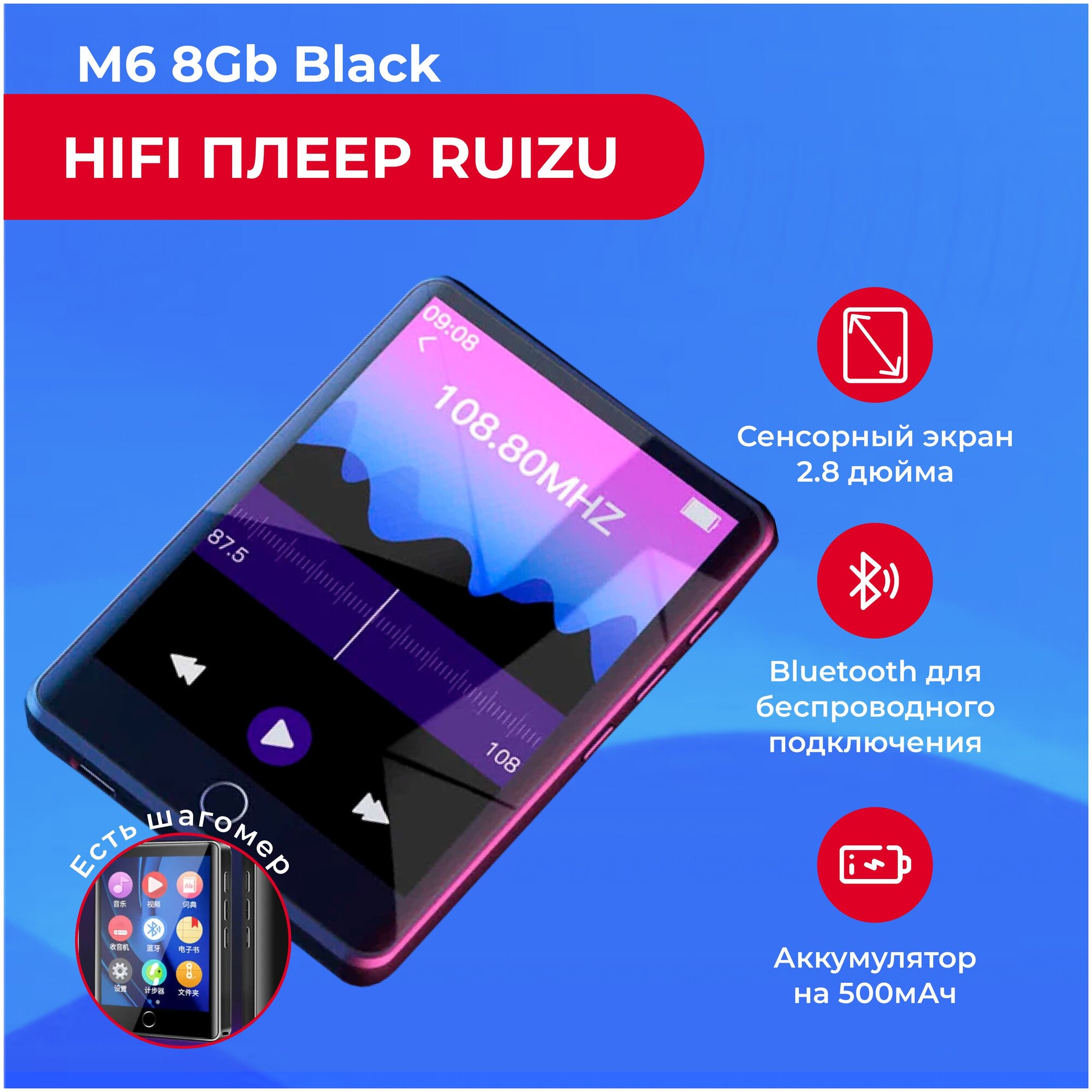 HiFi плеер RUIZU M6 8Гб черный интересное: