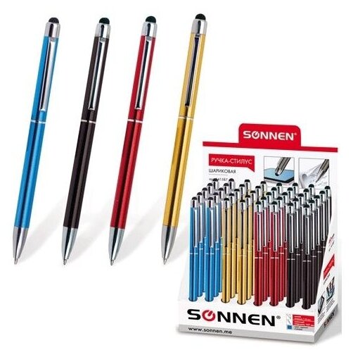 Купить Ручка-стилус SONNEN для смартфонов/планшетов, синяя, корпус ассорти, серебристые детали, линия письма 1 мм, 141587 141587