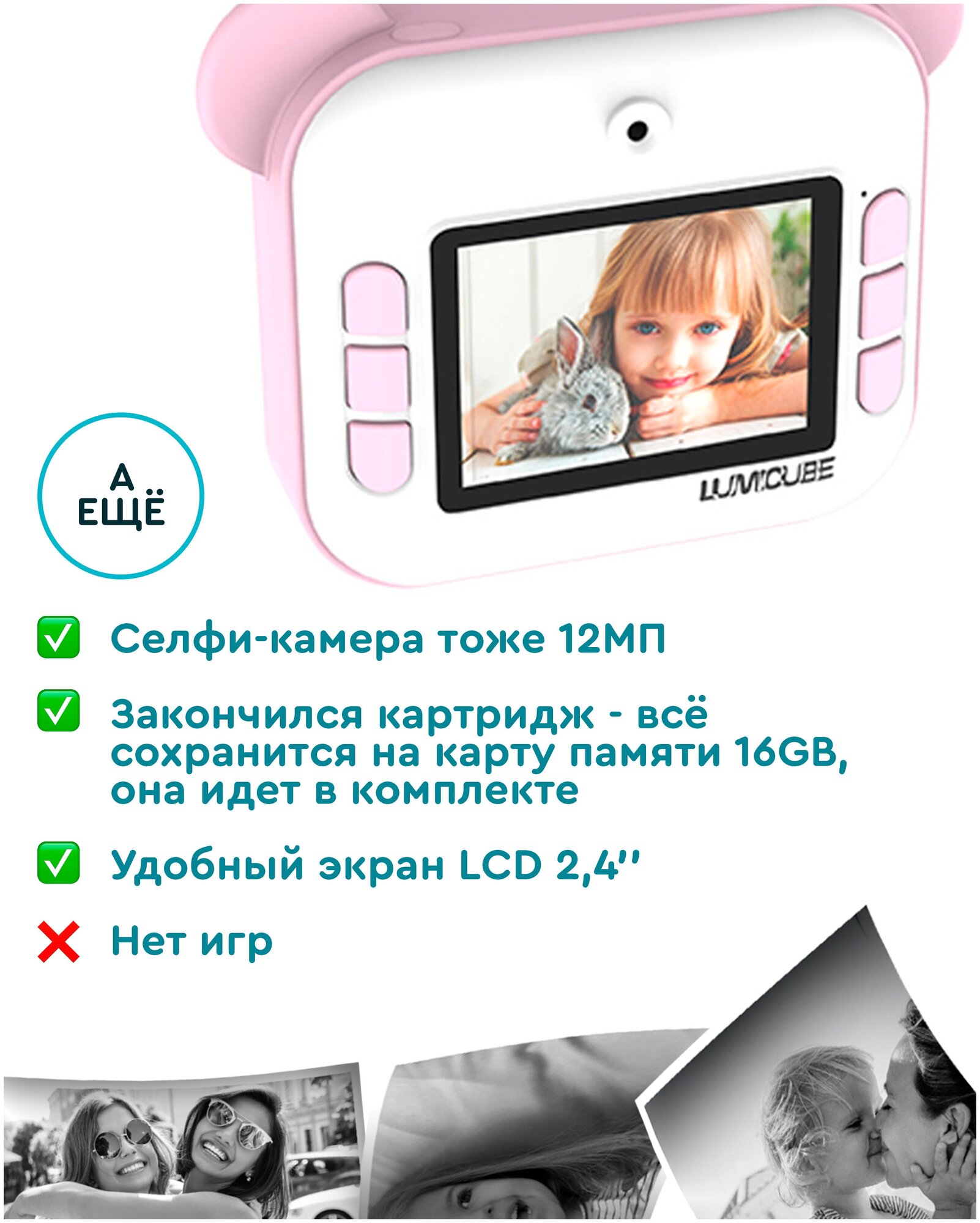 Детский фотоаппарат моментальной печати LUMICUBE Lumicam DK04, розовый