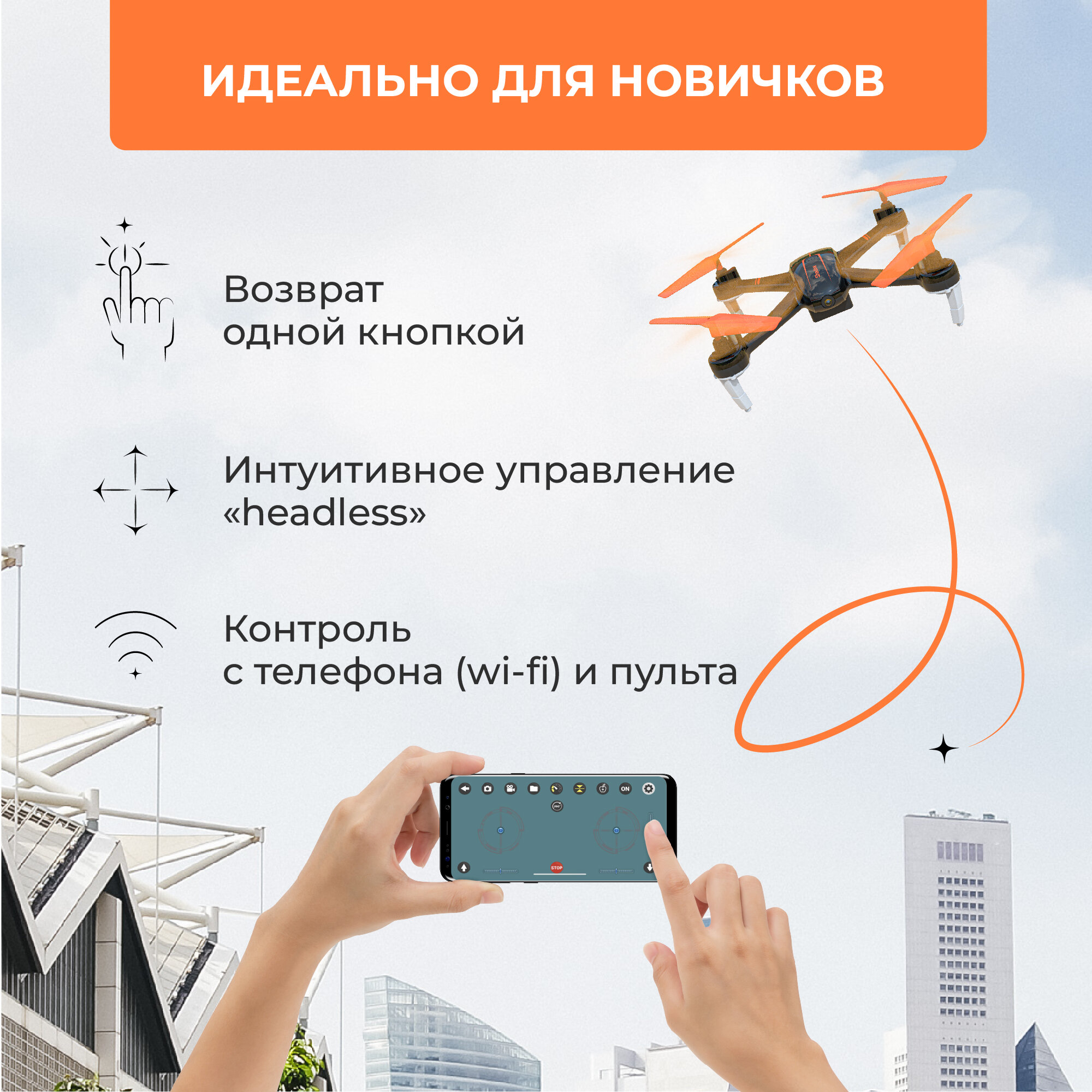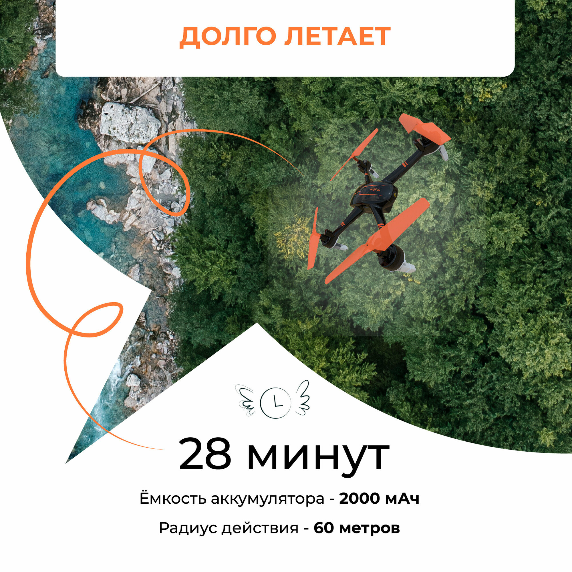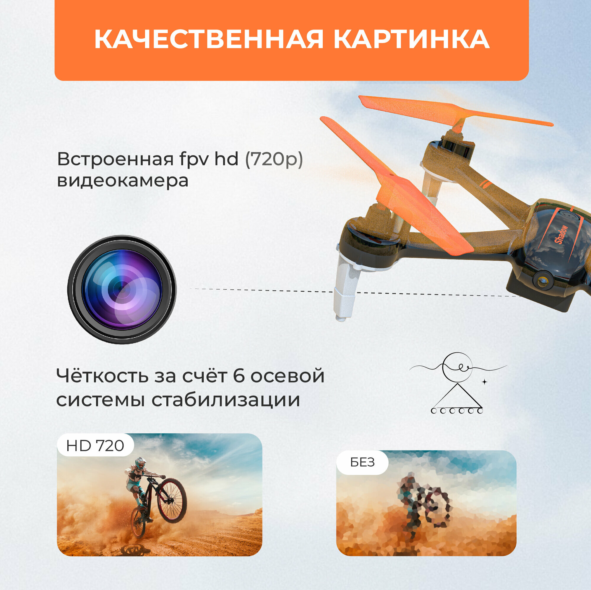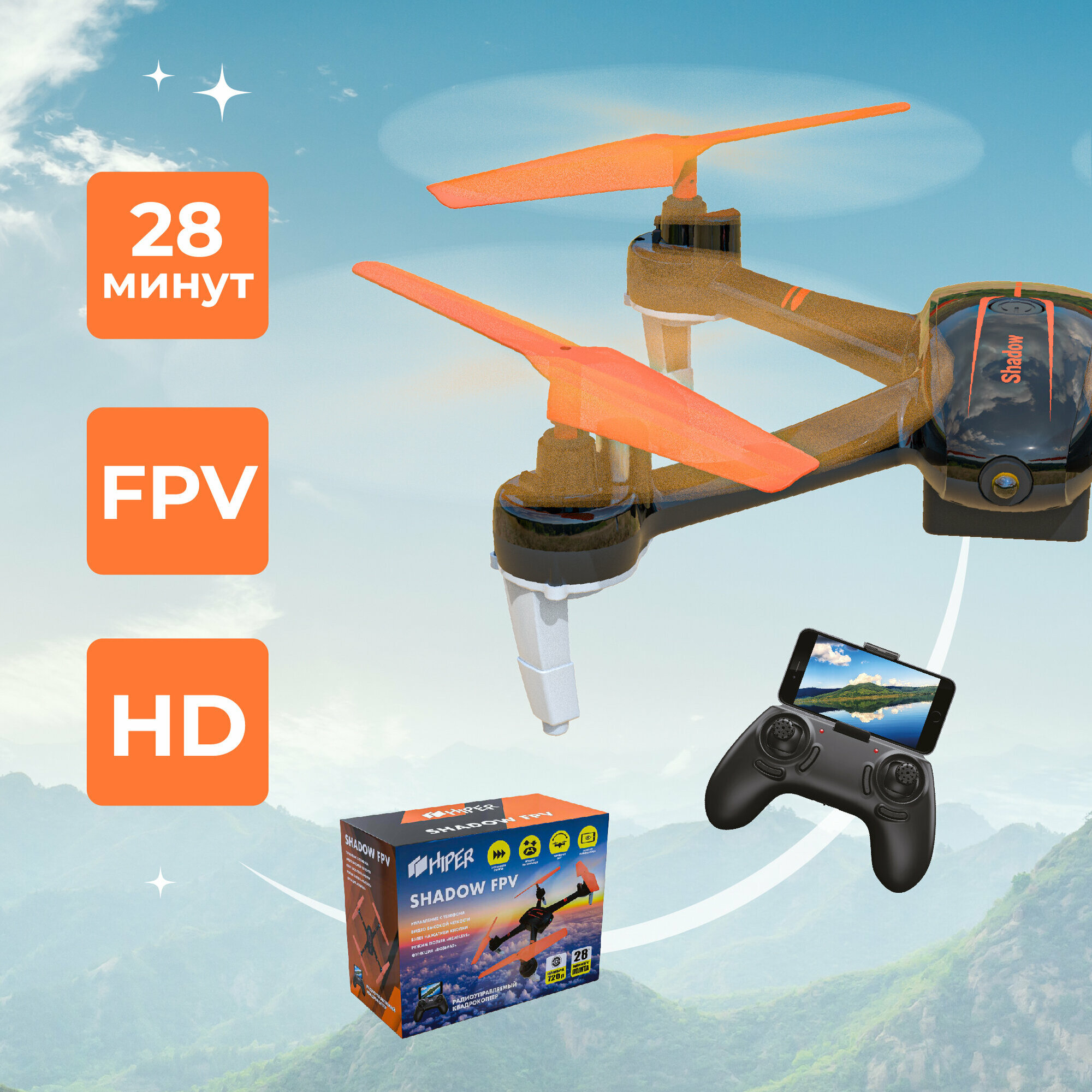 Радиоуправляемый квадрокоптер HIPER HQC-0001 SHADOW FPV, время полета до 28 минут, автоматическое удержание высоты, камера HD 720P, полет от первого лица, слот для SD карты, система стабилизации, 3 режима скорости, кульбиты, режим headless, черный/оранжев