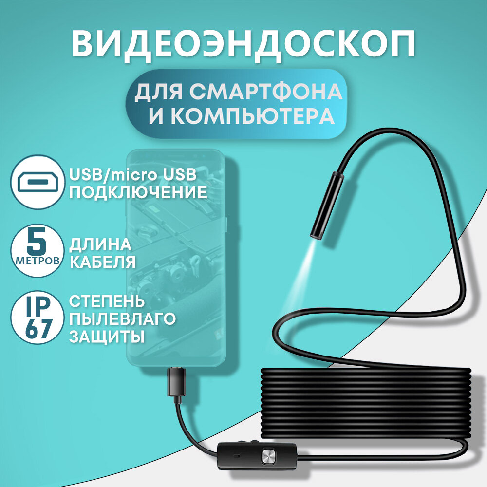 Эндоскоп для смартфона Андроид и компьютера водонепроницаемый InnoZone 480P 7мм гибкая камера, подсветка, длина 5м, для автомобиля и бытовых нужд интересное: