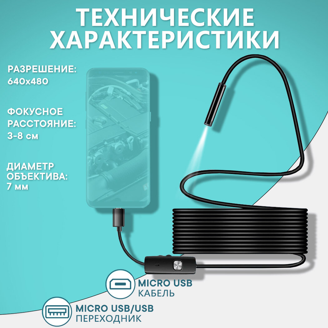 Камера-эндоскоп для смартфона водонепроницаемый, 2 метра