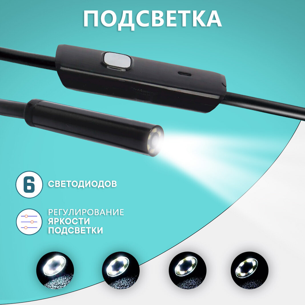 Камера-эндоскоп для смартфона водонепроницаемый, 2 метра