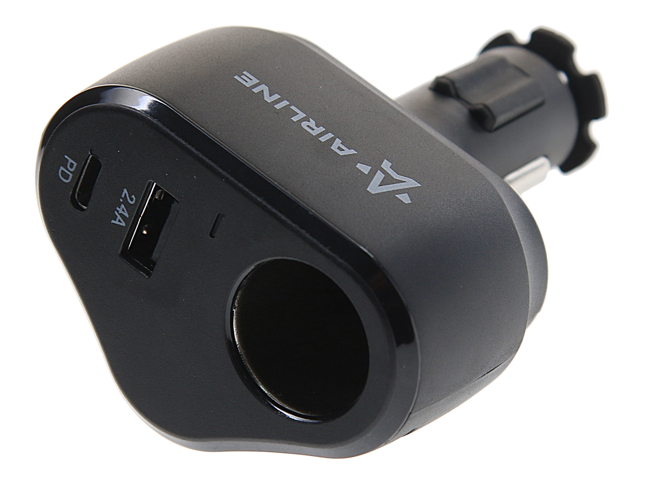 AEBD033 AIRLINE Разветвитель прикуривателя 1 гнездо + Type-C PD + 1USB 2.4A 30Вт PRO (AEBD033)