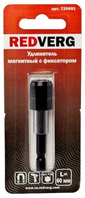 Удлинитель для бит REDVERG магнитный с фиксатором 1/4'' 60мм