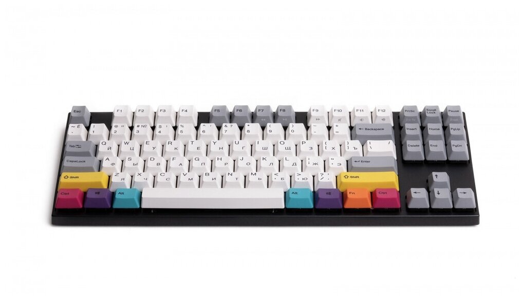 Эти кейкапы нечто! Бесподобный белый цвет кейкапов и покрытие ! А нажатия (у меня Silent Red) ... оооо!!! Шрифты абсолютно читаемы и нанесены на заводе, а не кустарным способом. Быстрая замена кейкапов, если нужно, однако заводские шикарны. В комплекте дополнительно идут сменные кейкапы другого цвета Shift, Ctrl, Alt, Win, Fn, CapsLock, ScrollLock. Клавиатура весит немногим меньше 2кг, что позволяет ей четко фиксироваться на столе. И, как пишут многие, качество слепой печати да и вообще после мембранки совершенно другое.я |