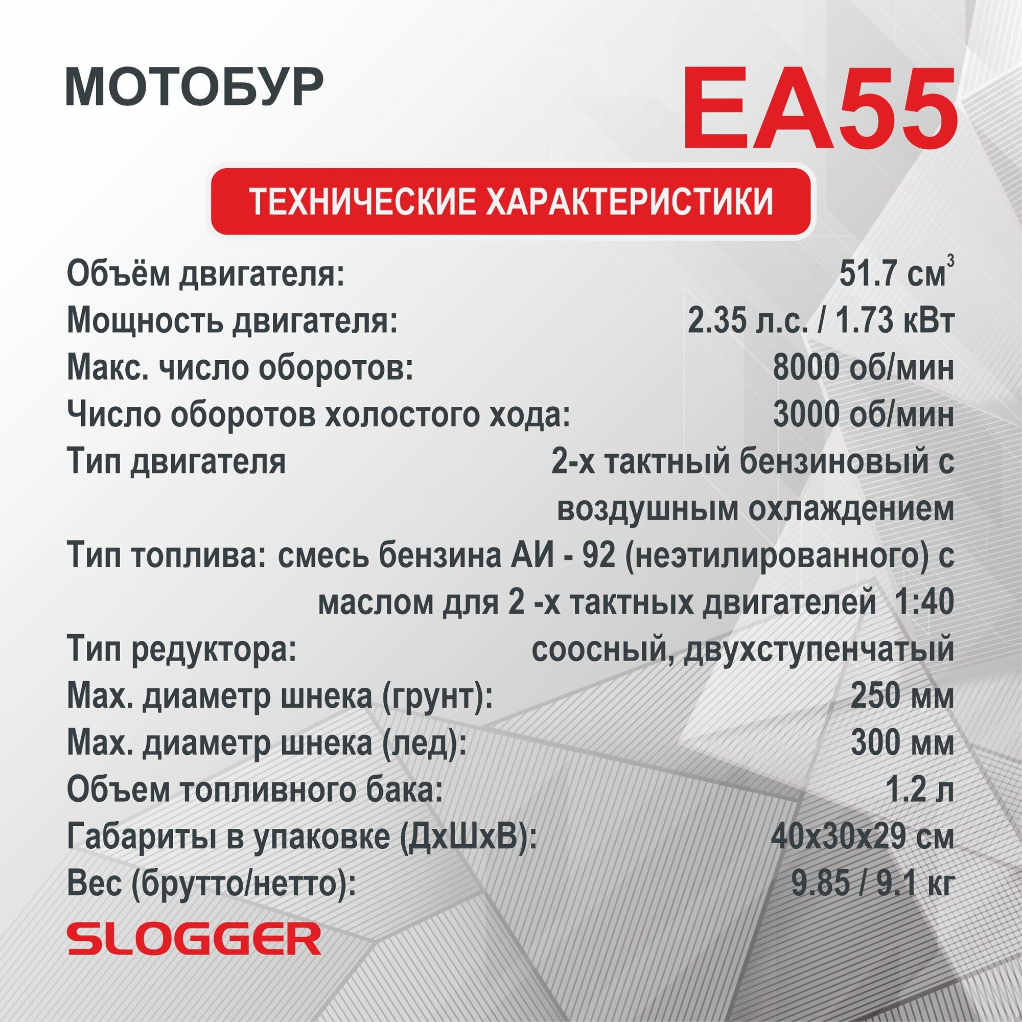 Ниже Вы можете прочитать отзывы на Мотобур SLOGGER EA55, ознакомится с подробными характеристиками, посмотреть интересные обзоры и фотографии на Мотобур SLOGGER EA55.