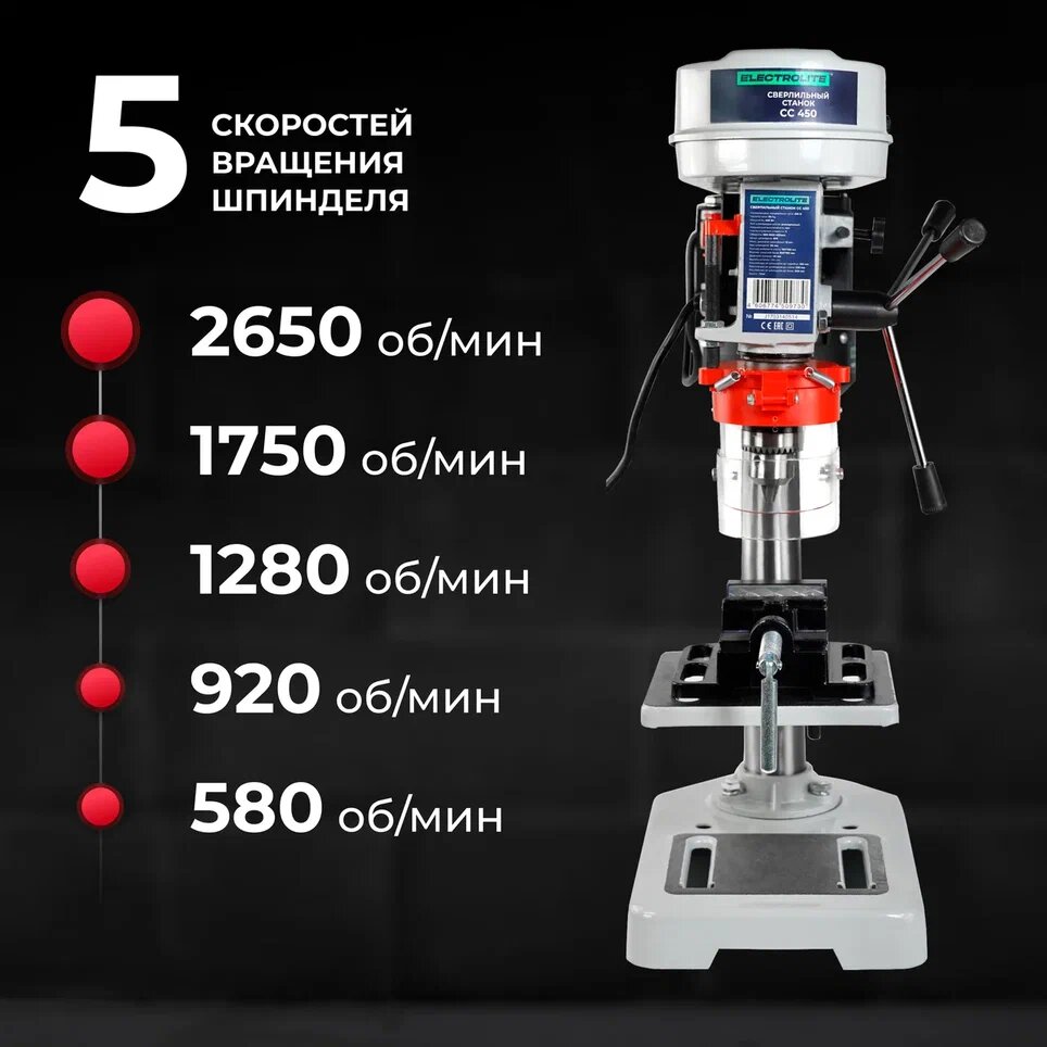 Вертикально-сверлильный станок Electrolite CC 450 13 мм 450 Вт 580-2650 об/мин 5 скоростей интересное: