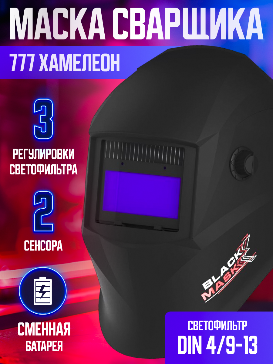 Маска сварочная ... Маска сварщика хамелеон 93х43 черная фильтр DIN 4/9-13 . WELDER PRO Ф5