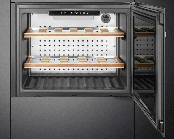Винный шкаф Smeg Linea, Холодильный шкаф для вина встраиваемый, 60 см, высота 45 см, петли слева, черное стекло.