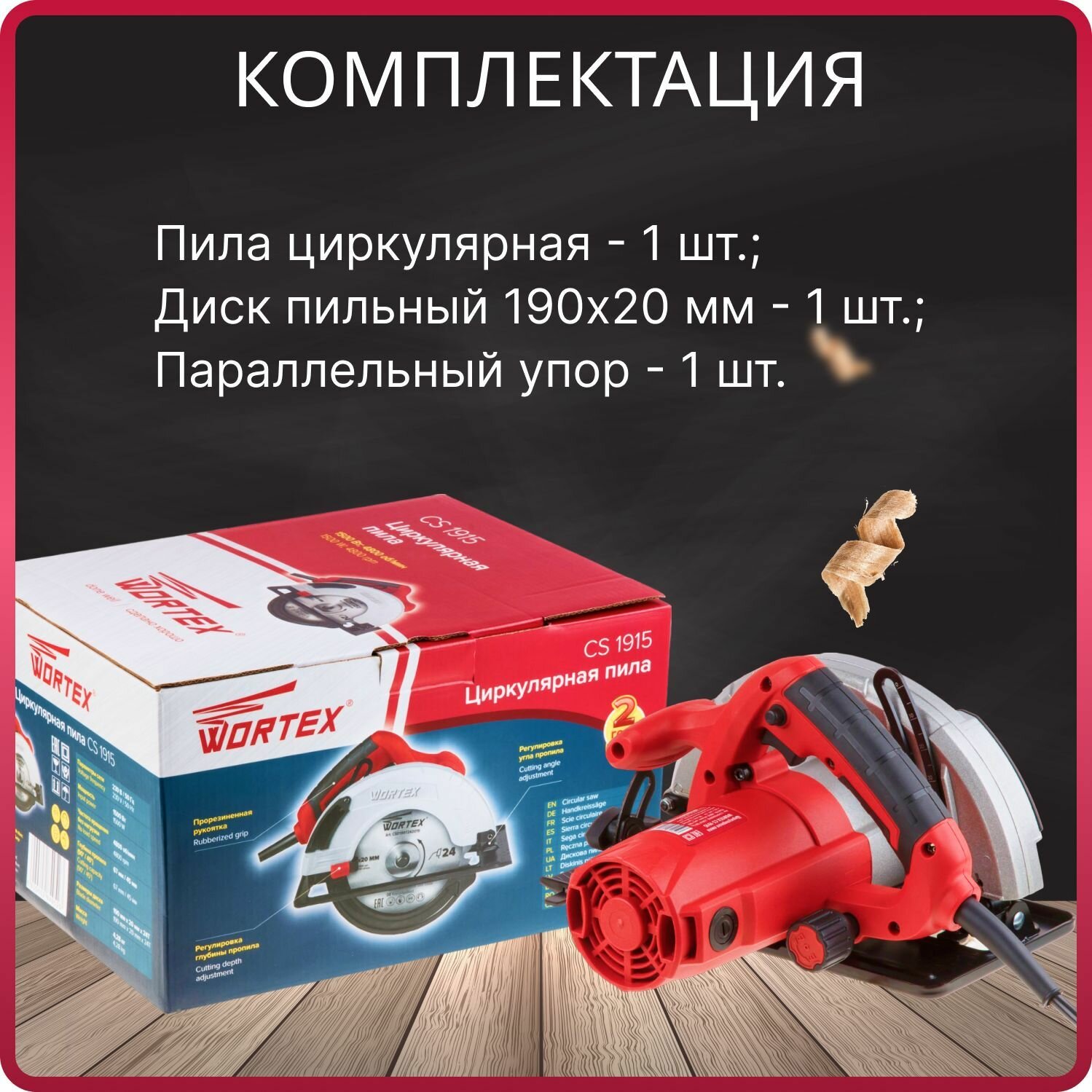Циркулярная пила дисковая WORTEX CS 1915 1500 Вт, 190х20 мм, до 67 мм