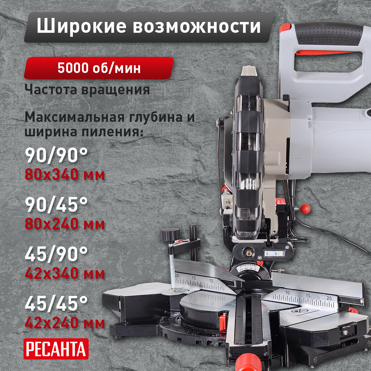 Торцовочная пила с протяжкой РЕСАНТА ТП-255ПЛ 75/18/1, 2200 Вт