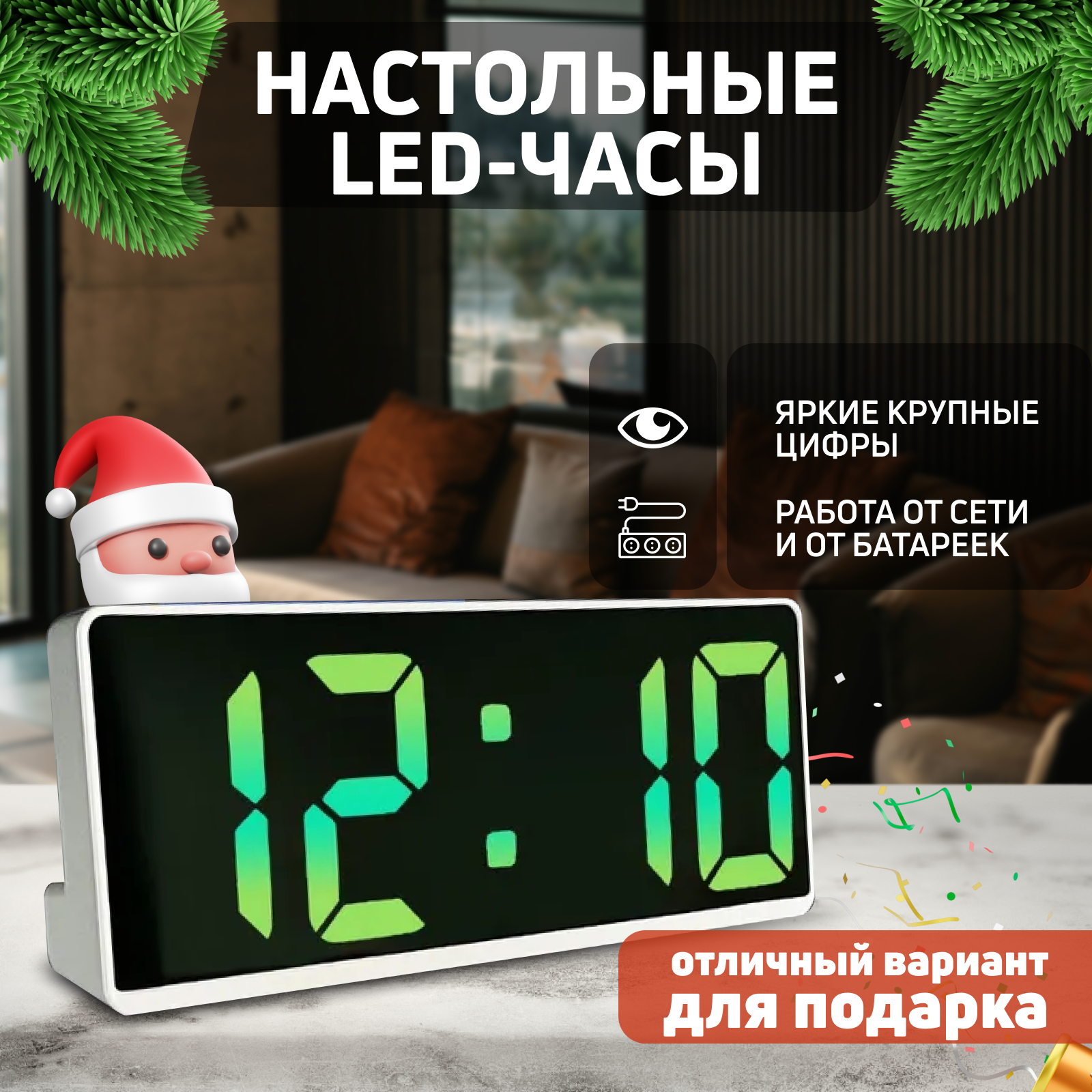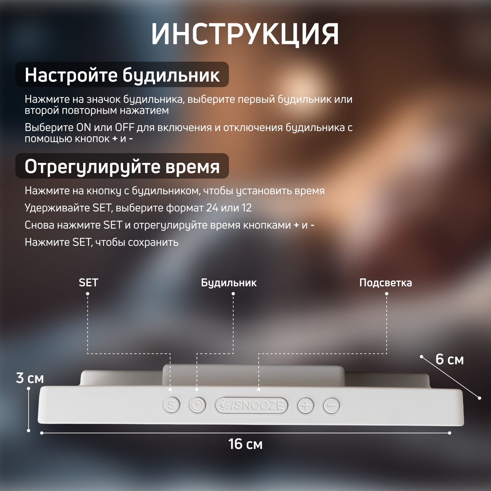 Часы настольные электронные с проекцией: будильник, термометр, календарь, 19.6 х 6.5 см