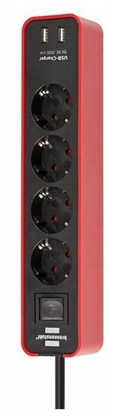 Удлинитель 1,5 м Brennenstuhl ECOLOR, 4 розетки, 2 USB, красный-черный (1153240076)