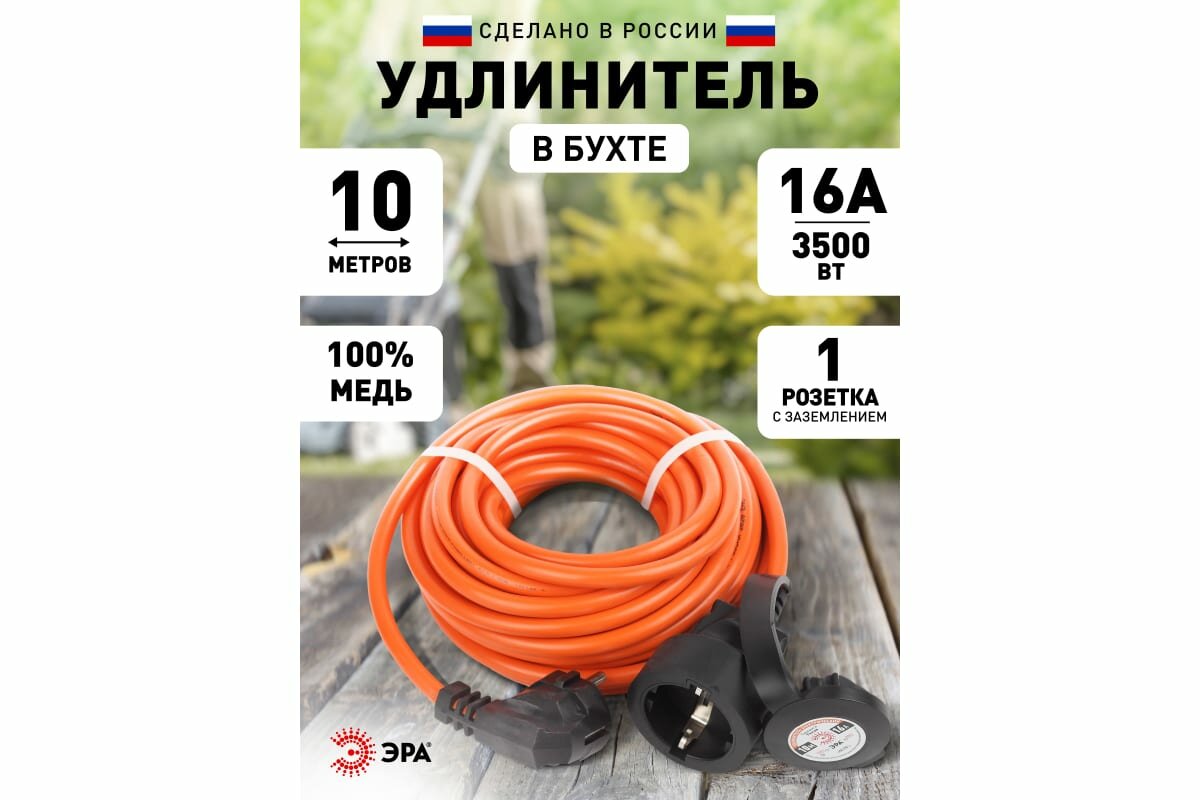 Удлинитель силовой с заземлением в бухте 1 гнездо 10м ПВС 3х1.5, ЭРА Б0046815 (1 шт.)