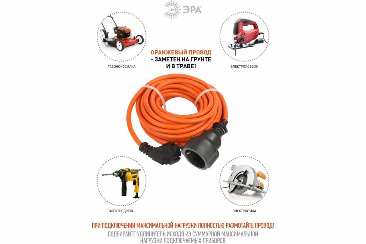 Удлинитель силовой Эра UPx-1e-3x0.75-30m-IP44, розеток 1шт, 3x0.75 кв.мм, 6A, 30м, ПВС, без катушки, оранжевый [б0046812]