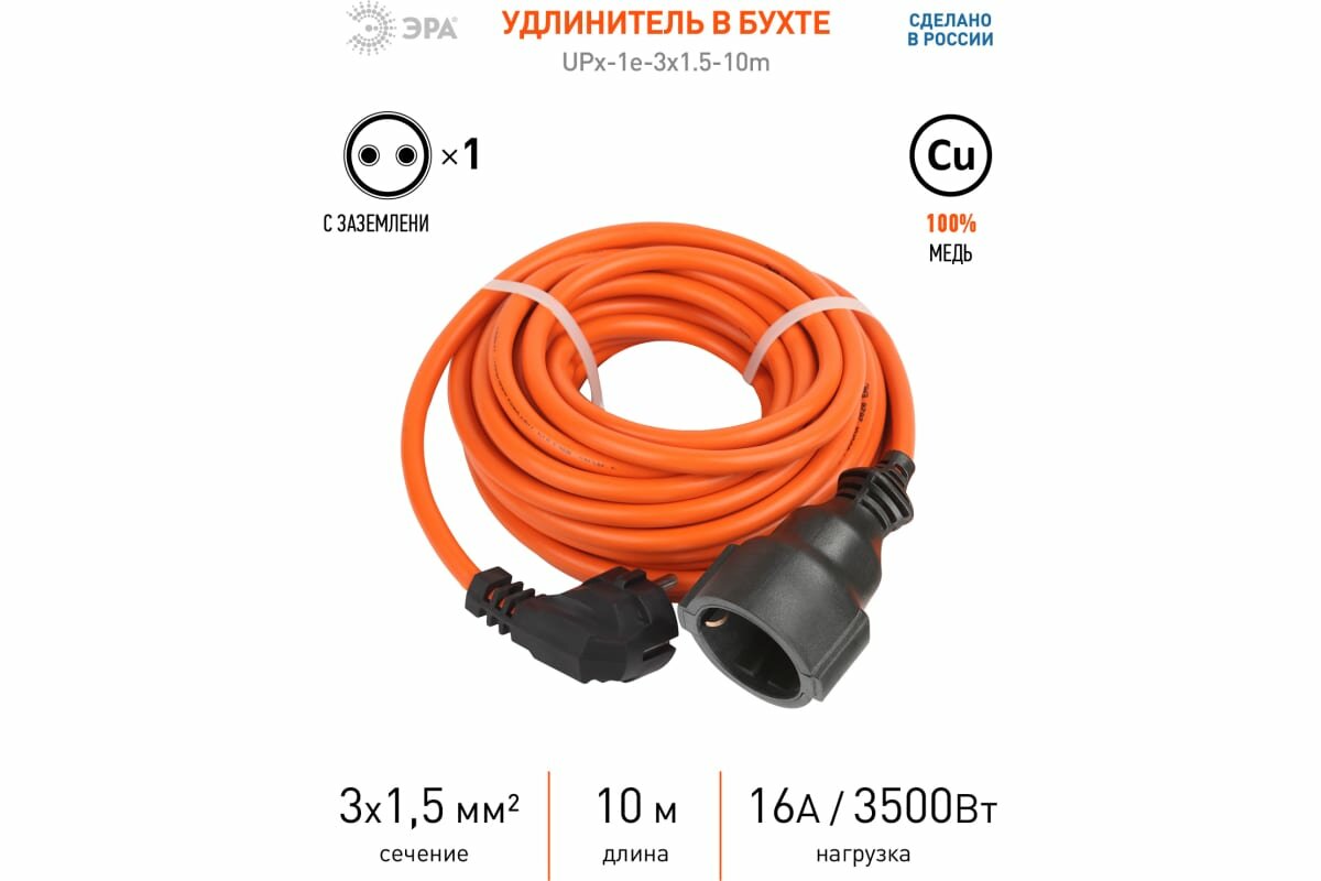 Купить ЭРА Удлинитель силовой UPx-1e-3x1.5-10m-IP44 в бухте c/з 1 гн 10м ПВС 3х1.5 (15/270)