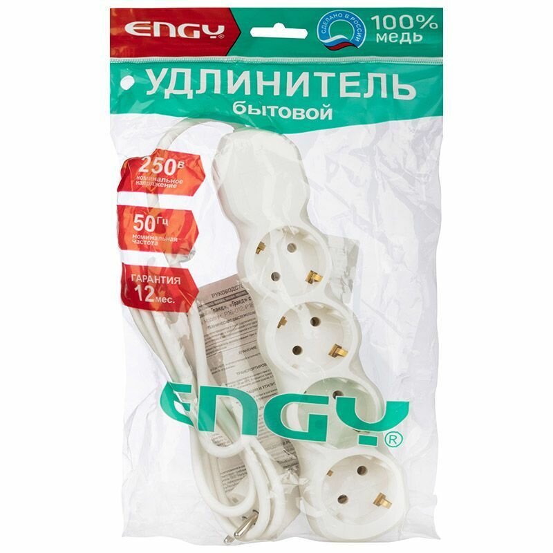 Купить Удлинитель Engy Гранд, ПВС 3 x 0,75 мм, с заземлением, 4 розетки, 1,7 м, белый