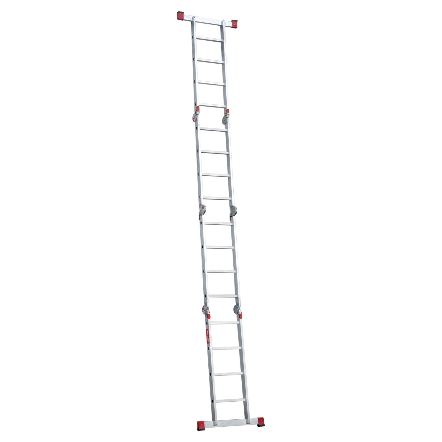 Лестница-трансформер алюминиевая 4×4 ступени, высота 4,5 м (4 секции по 1,2 м) до 150 кг, вес 16,5 кг, новая высота