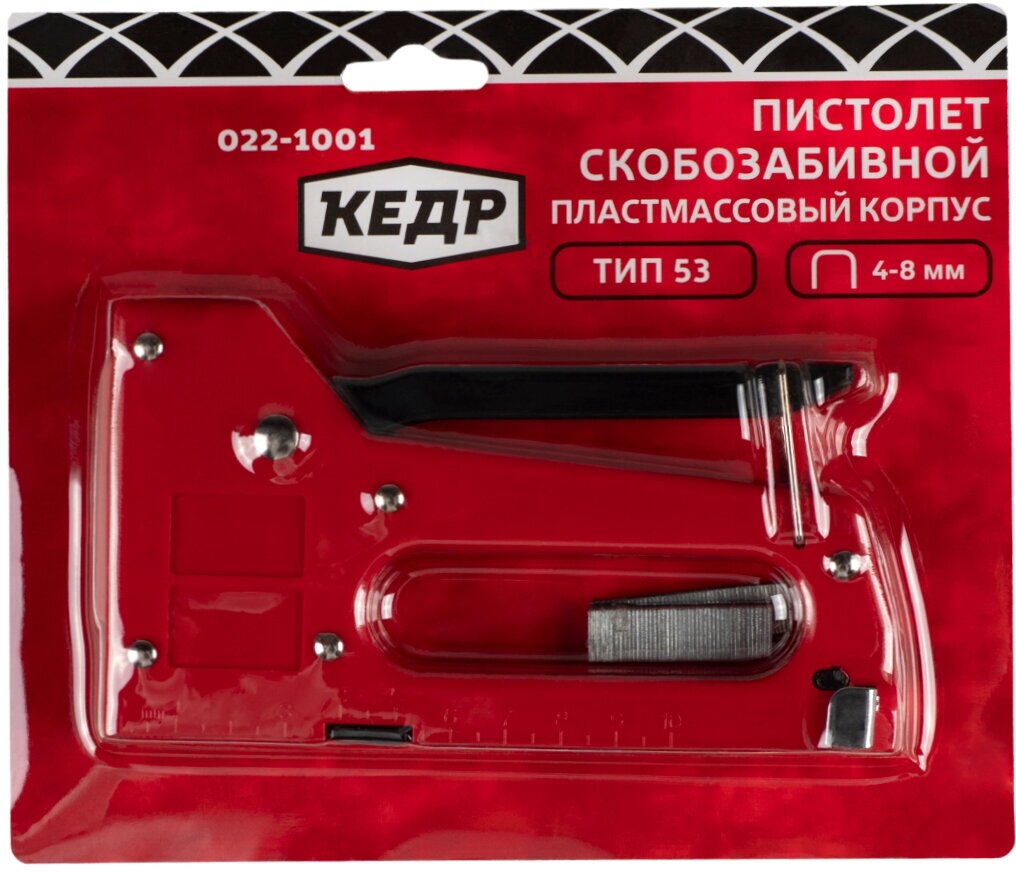 Строительный степлер Кедр, тип 53 под скобы 4 - 8 мм, пластмассовый корпус интересное:
