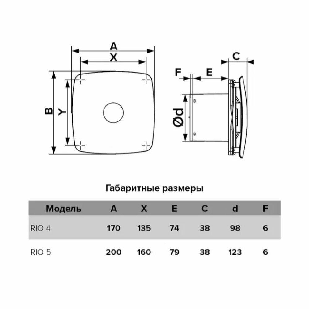 RIO 5C вентилятор вытяжной бесшумный c обратным клапаном на шарикоподшипниках D123