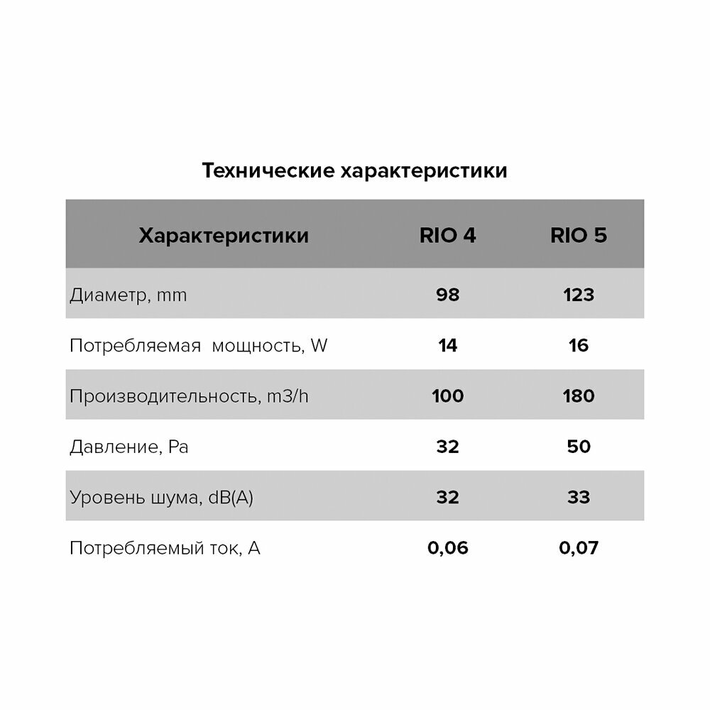 RIO 5C, Вентилятор осевой вытяжной с обратным клапаном D 123
