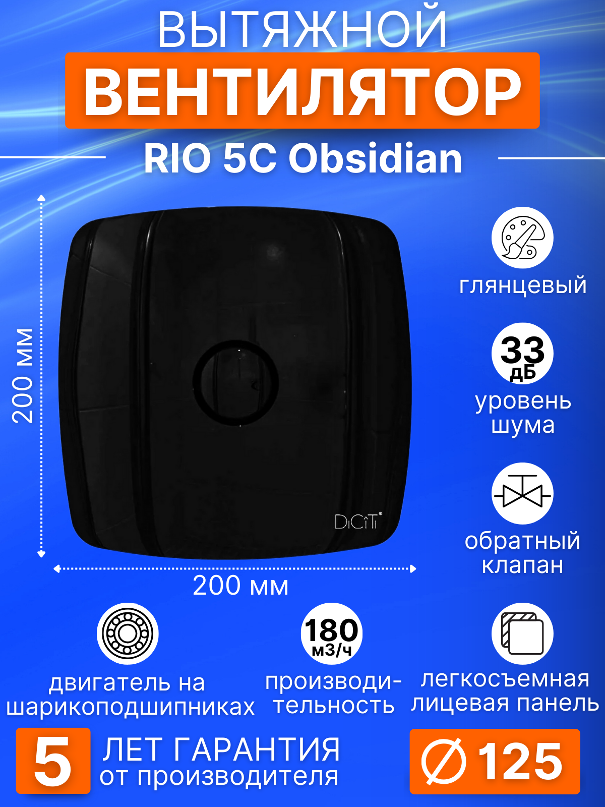Вентилятор вытяжной DICITI RIO 5C Obsidian, D 125 (с о/к)
