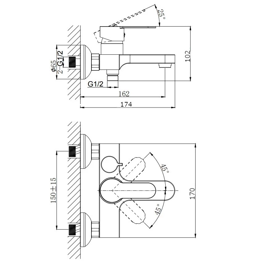 Смеситель для ванны с душем Wasserkraft Elbe (7421)