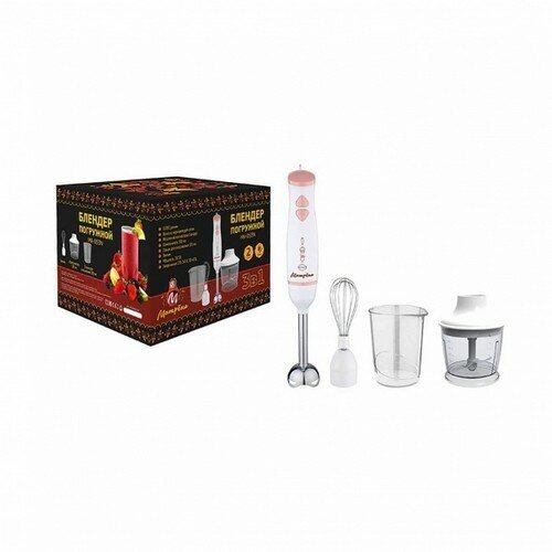 Блендер погружной матрёна МА-053N, 350Вт, 2 скорости, измельчитель, стакан для смешивания, венчик