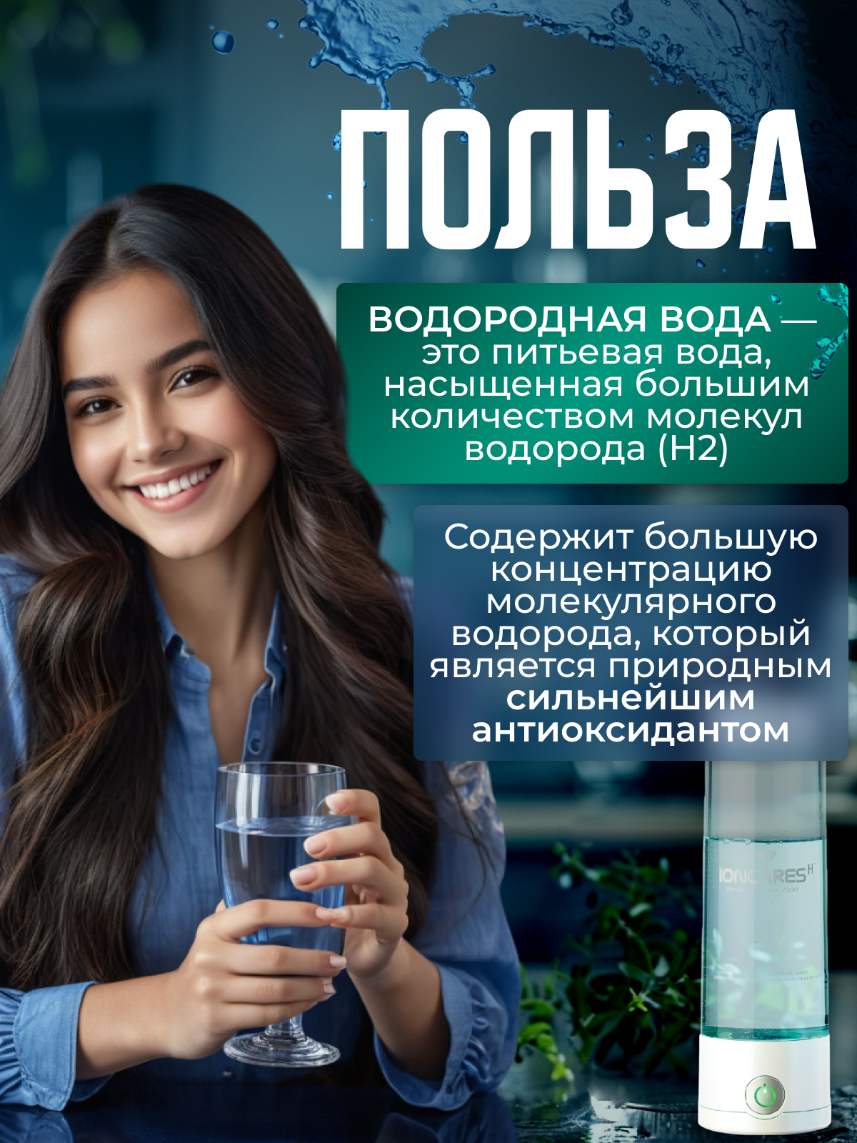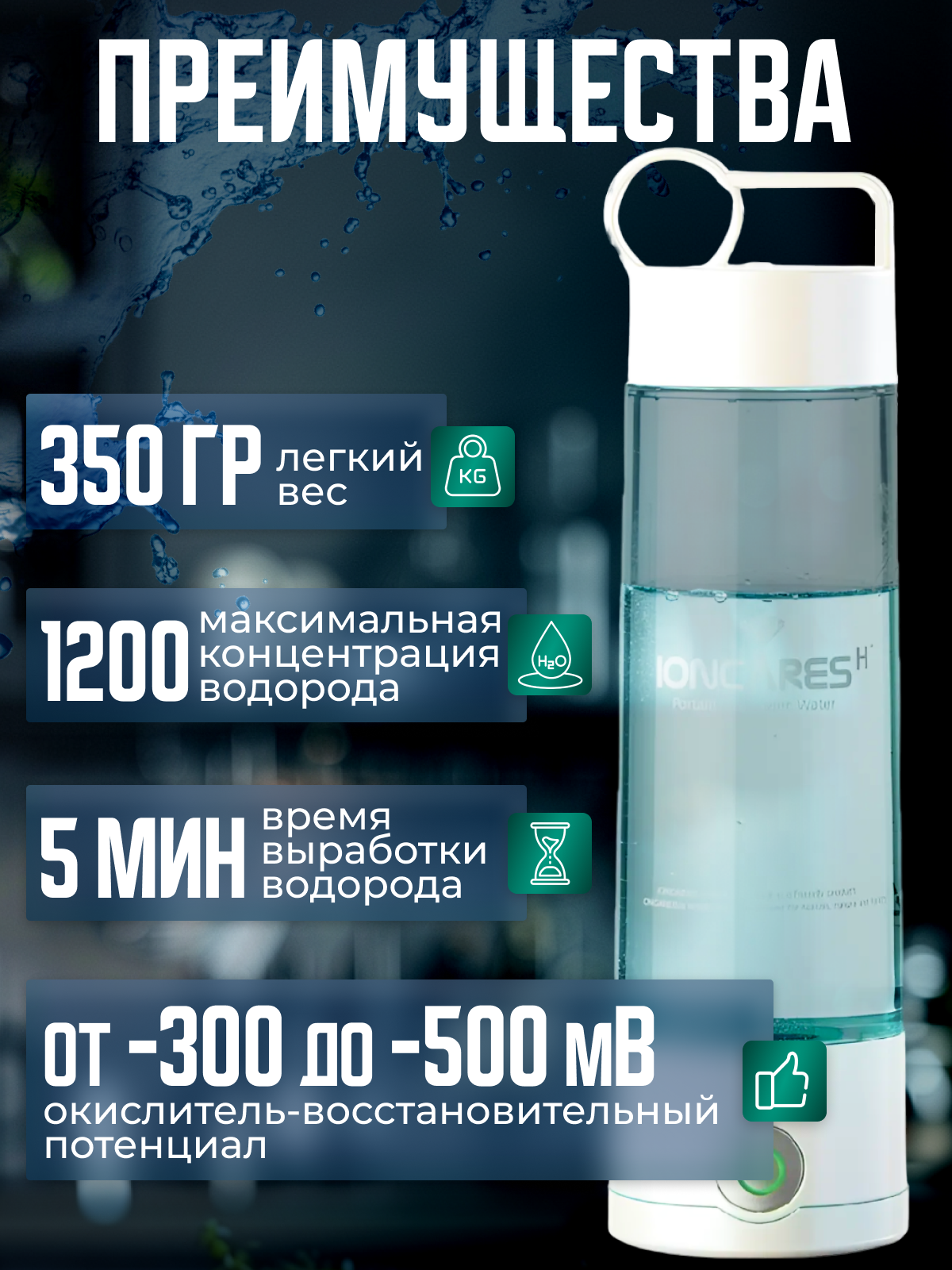 Портативный генератор водородной воды Ioncare H+ 0,5 л. интересное: