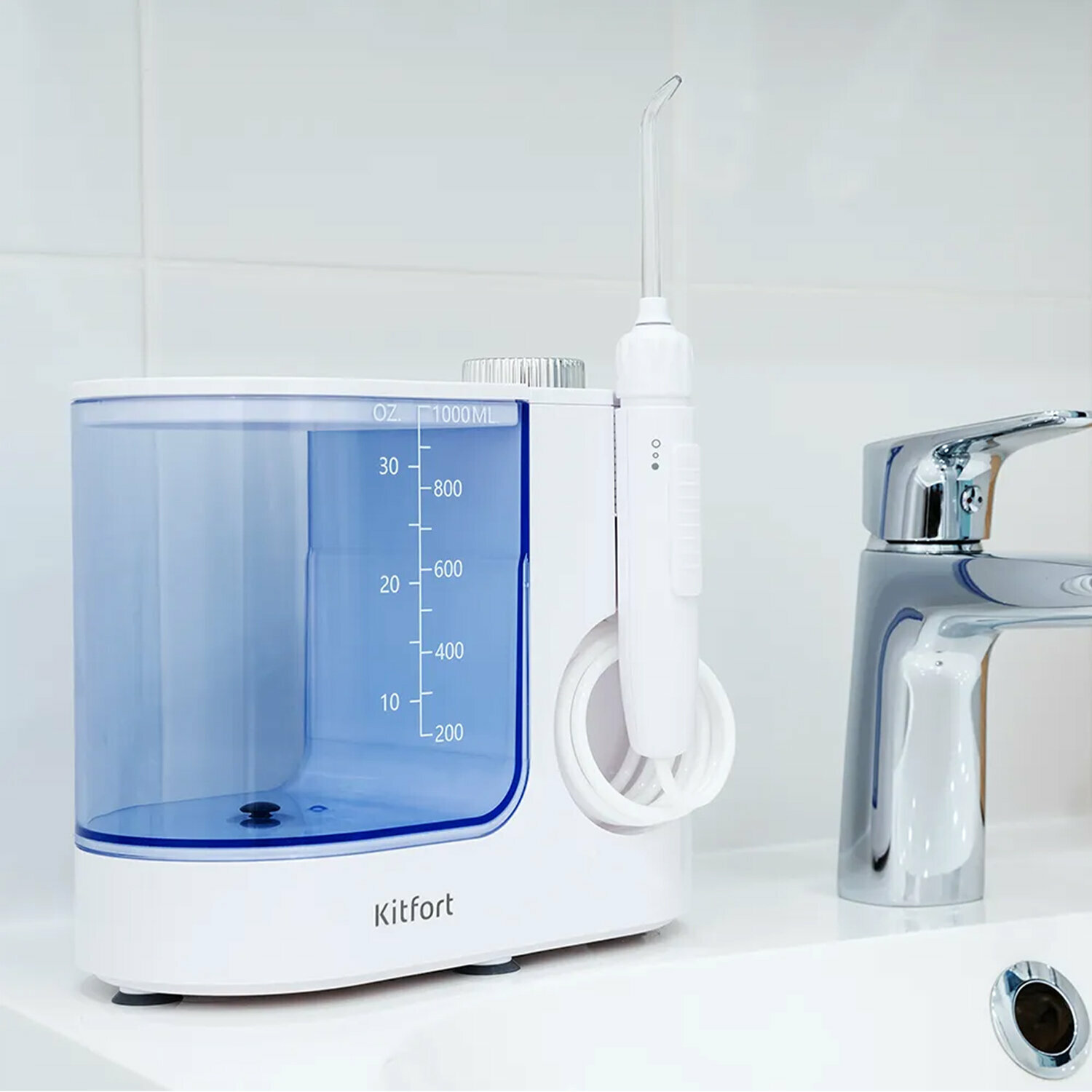 Ирригатор для полости рта KITFORT КТ-2914, стационарный, емкость резервуара 1 л, 6 насадок, белый Комплект - 1 шт .