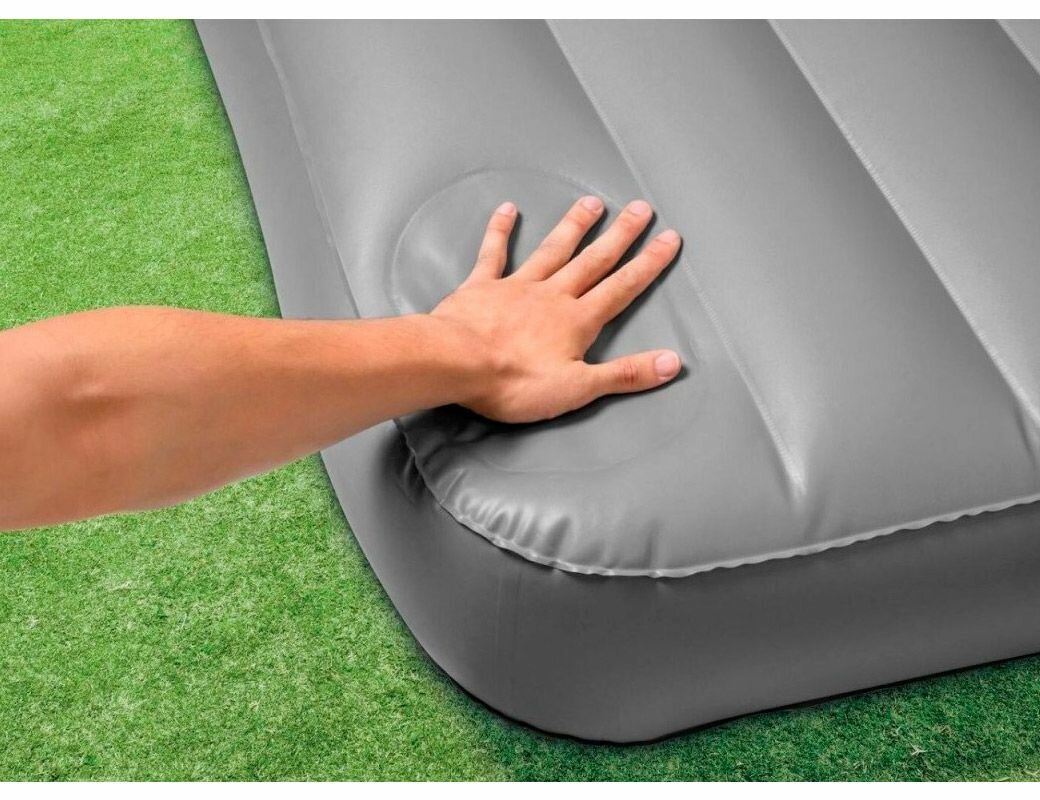 Матрас надувной Intex Матрас-кровать QUEEN DELUXE SINGLE-HIGH (152х203х25) насос на бат., регулятор давл. Серый 152 см / интекс