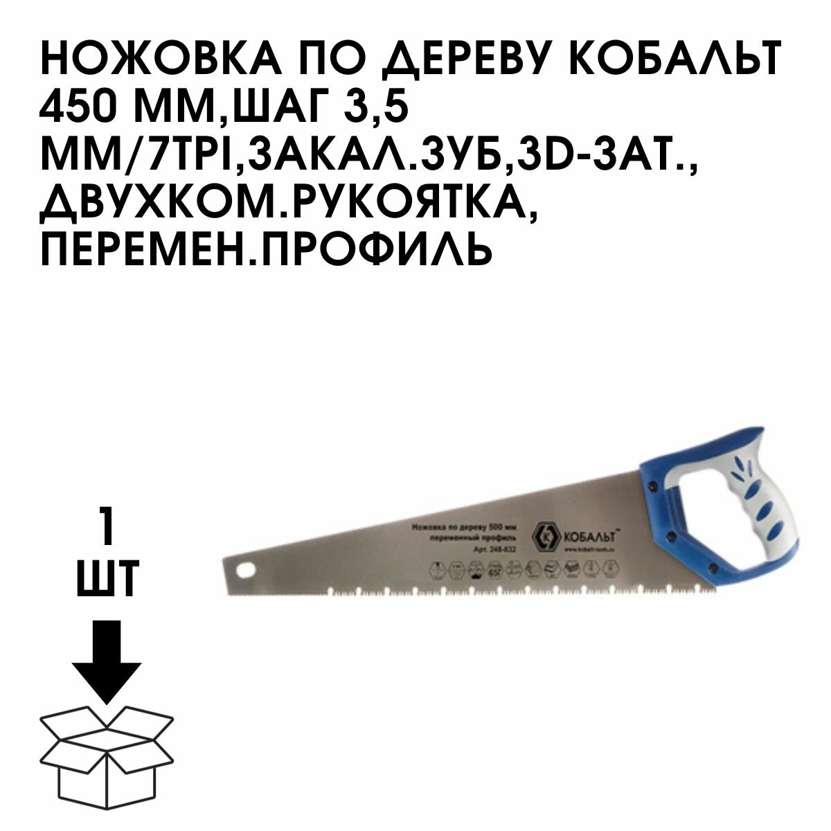 Купить Ножовка по дереву 450 мм, шаг 3,5 мм/ 7 TPI Кобальт 246-128