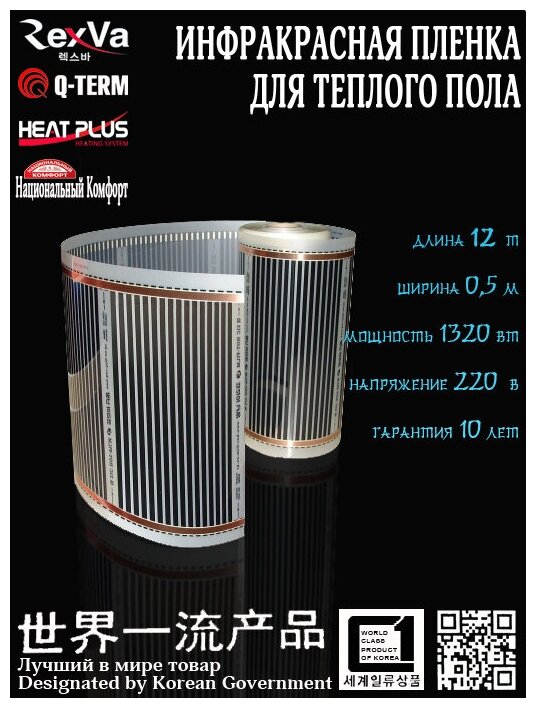 Инфракрасная нагревательная пленка на отрез метражом Теплый пол ширина 50 см длина 12 м интересное: