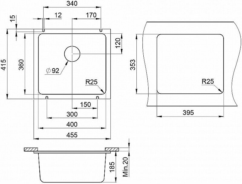 Мойка GRANULA GR-3601 чёрный 455х415мм