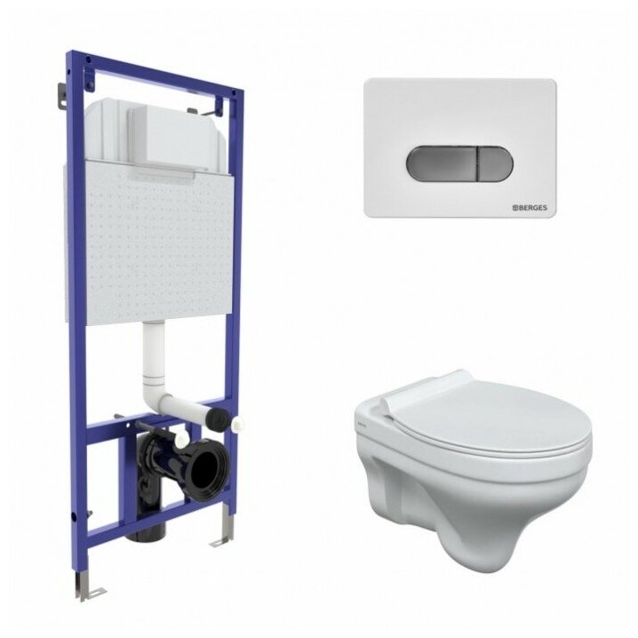 Berges Wasserhaus Комплект унитаза BERGES MASCON Rimless с инсталляцией NOVUM, кнопка D7, сидение дюропласт Toma Slim SO