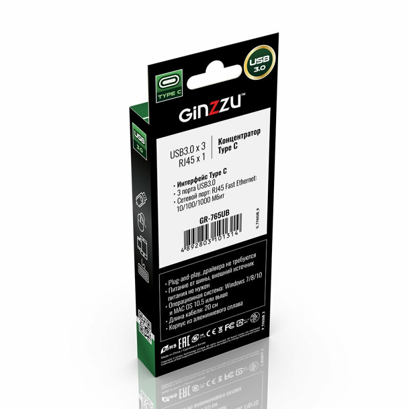 Хаб USB Ginzzu GR-765UB USB Type-C - 3xUSB 3.0/RJ45 Black 17426 интересное: