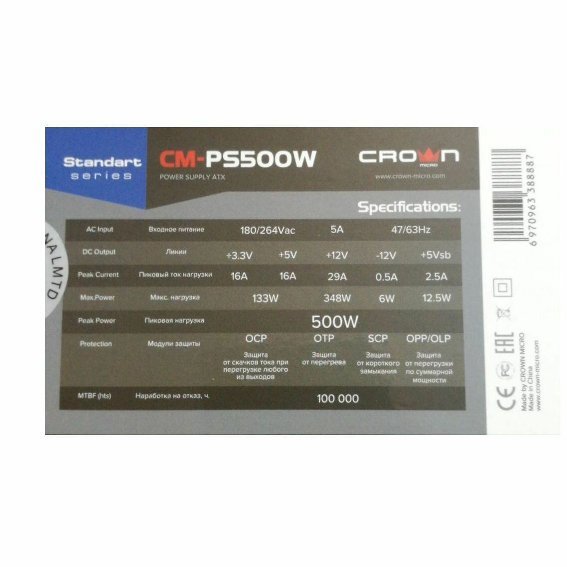 Блок питания CROWN MICRO CROWN CM-PS500W OEM CM000003027 (CM000003027)