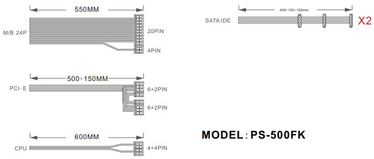 Блок питания 1STPLAYER FK, 500W (PS-500FK)