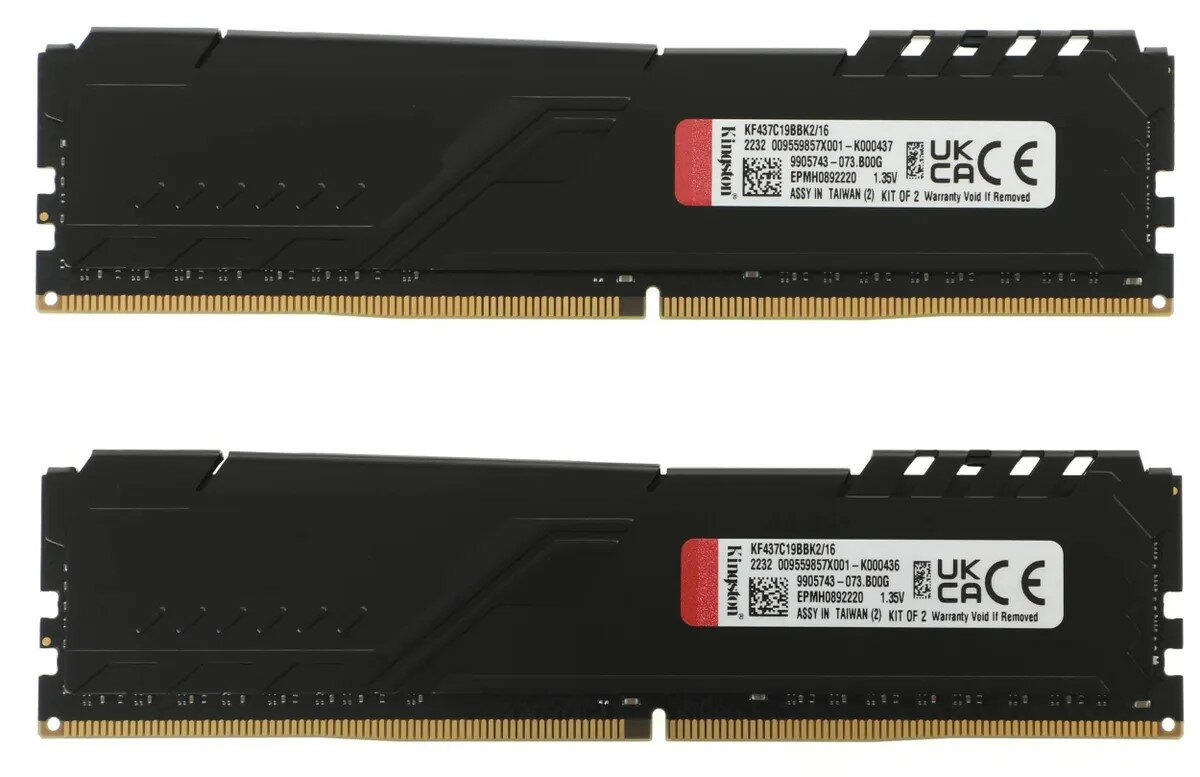 Оперативная память Kingston KF437C19BBK2/16/8GB / PC4-29800 DDR4 UDIMM-3733MHz DIMM/в комплекте 2 модуля