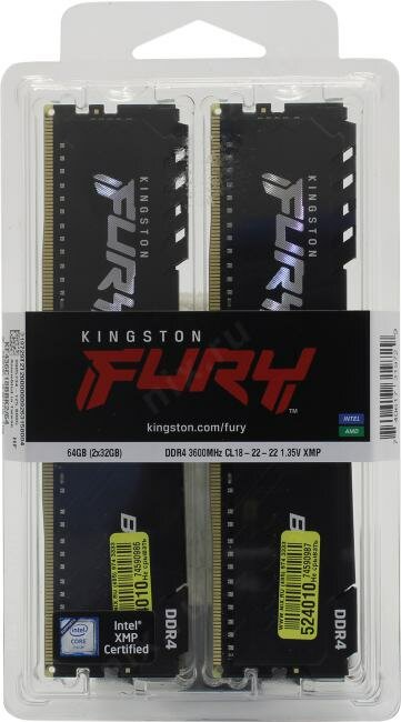 Модуль памяти Kingston Fury Beast Black KF436C18BBK2/64 DDR4 - 2x 32ГБ 3600, DIMM, Ret