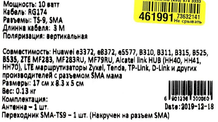 Антенна DS-4GW416-SMAM3M-TS9 интересное:
